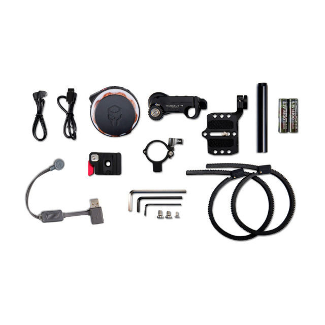 Follow Focus y control: 1 Follow focus inalámbrico con empuñadura de madera, 1 Motor de follow inalámbrico con 1 mariposa.