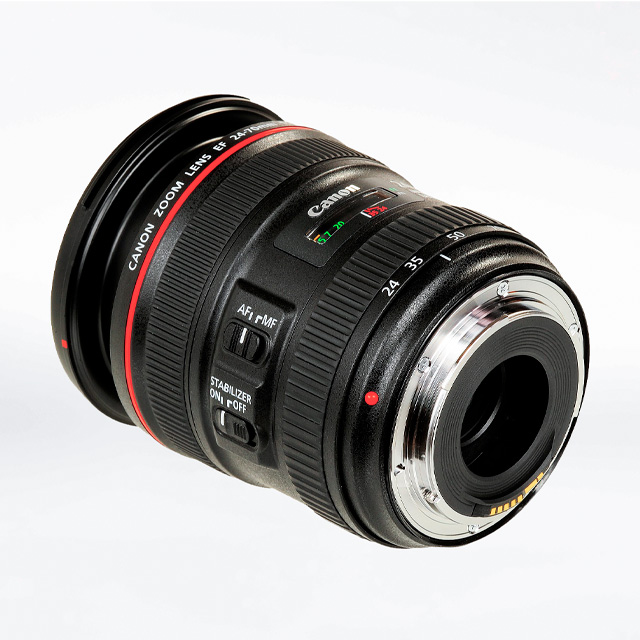 Óptica: 1 Lente Canon 24–105mm f/4 (montura Canon EF), 2 Tapas de lente, 1 Estuche para lente.