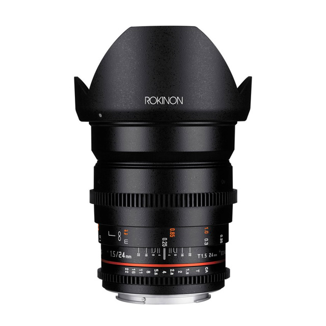 Óptica: 1 Lente Rokinon Cine 24mm T/1.5 (montura Canon EF), 2 Tapas de lente, 1 Estuche para lente.