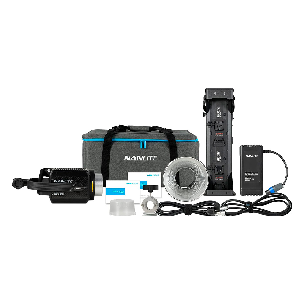 Iluminación: 1 Luz Nanlite Forza 300B Bi-Color, 1 Hiperreflector.